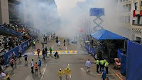 If you look carefully at archival photos and footage of the Boston Marathon, which spans decades, you will notice that the trash receptacles are made of reinforced concrete. These have the useful property of being relatively bombproof, in the sense of deflecting most of the energy of an explosion upward, so that the passers-by are showered with widely dispersed debris raining from above rather than being blown to bits by shrapnel flying horizontally at supersonic speeds. These concrete receptacles were used for a very good reason: there is no way to prevent wing-nuts from tossing bombs into trash cans; there is, however, a way to minimize the damage caused by the explosions. But at some point during the past few years someone within Boston city government ordered those concrete receptacles replaced with plastic-and-metal ones, scoring a major victory for organizational stupidity, and setting the stage for what essentially became a crime of opportunity. It seems like the wing-nut (of a kind that the human race produces with some regularity) tossed a couple crude home-made time-bombs in trash receptacles along the path of the marathon and drove off, briefly getting off the expressway to drop off his spare bomb at the JFK library, then sped on south. Of course it is important to find him (statistically, he is most likely a white male American) and lock him up. But it is far more important to find the person in city government who ordered the trash receptacles replaced. That person is the terrorist's accomplice—perhaps an unwitting accomplice, but then stupidity is no defense. Oh, and can we please have the bomb-proof trash receptacles back?